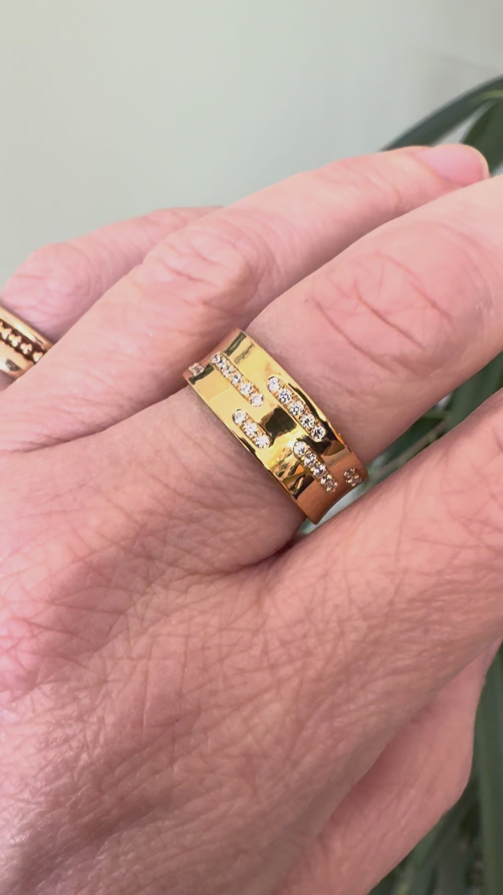 Ringen med Fartränder! Extrarött guld och många diamanter! Ringen är bred, och ganska så kraftig! Fint välvd både utanpå och inuti ringen - vilket gör den extra bekväm att bära. Finns färdig i ett exemplar, men görs på beställning i valfri / bredd / höjd / färg på guld / valfritt val av stenar. Hör av dig, så bestämmer vi exakt hur din ring ska se ut!