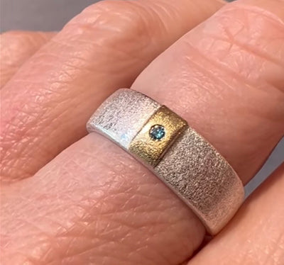 Blå Himmel – handgjord ring i silver/guld