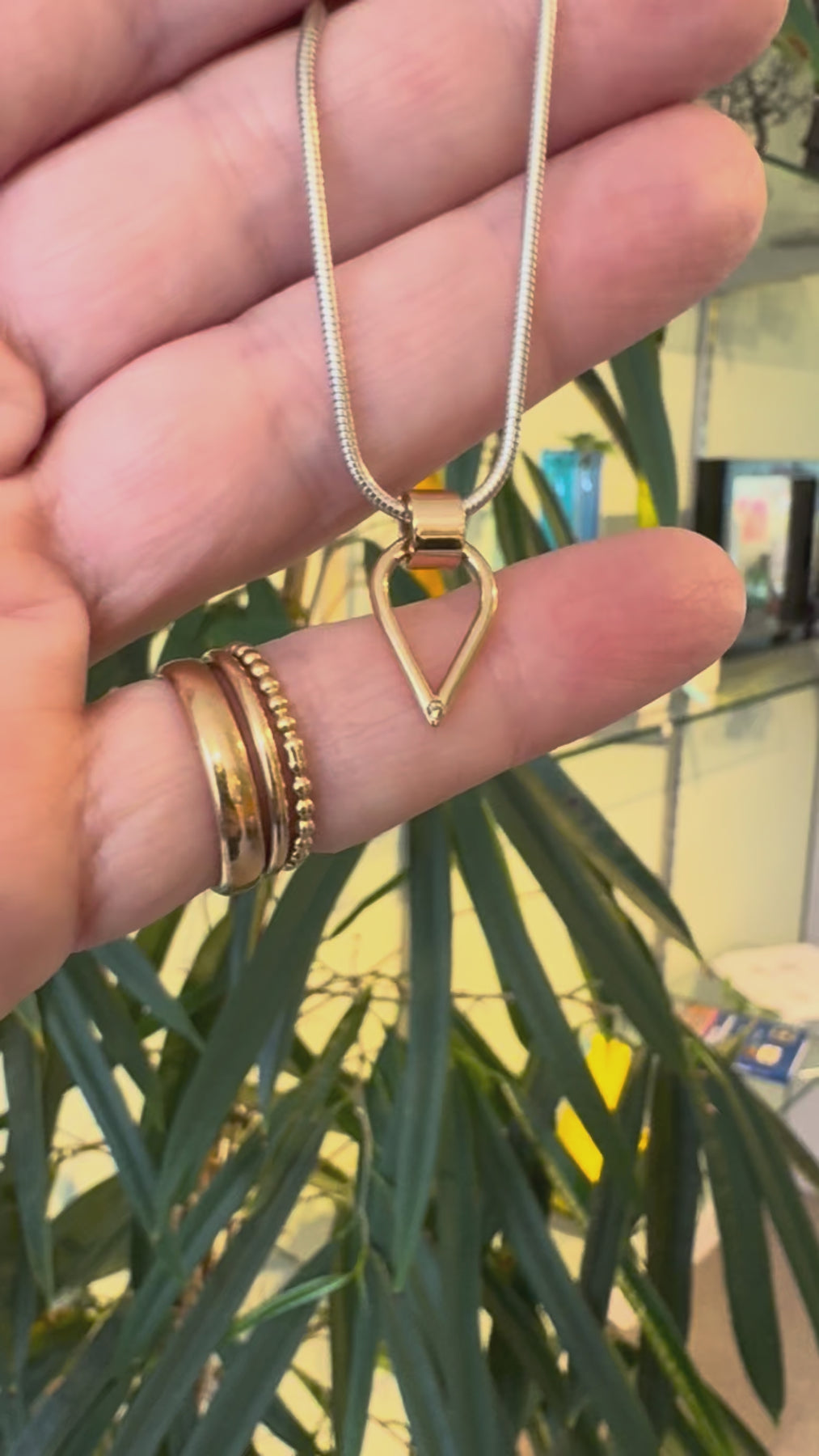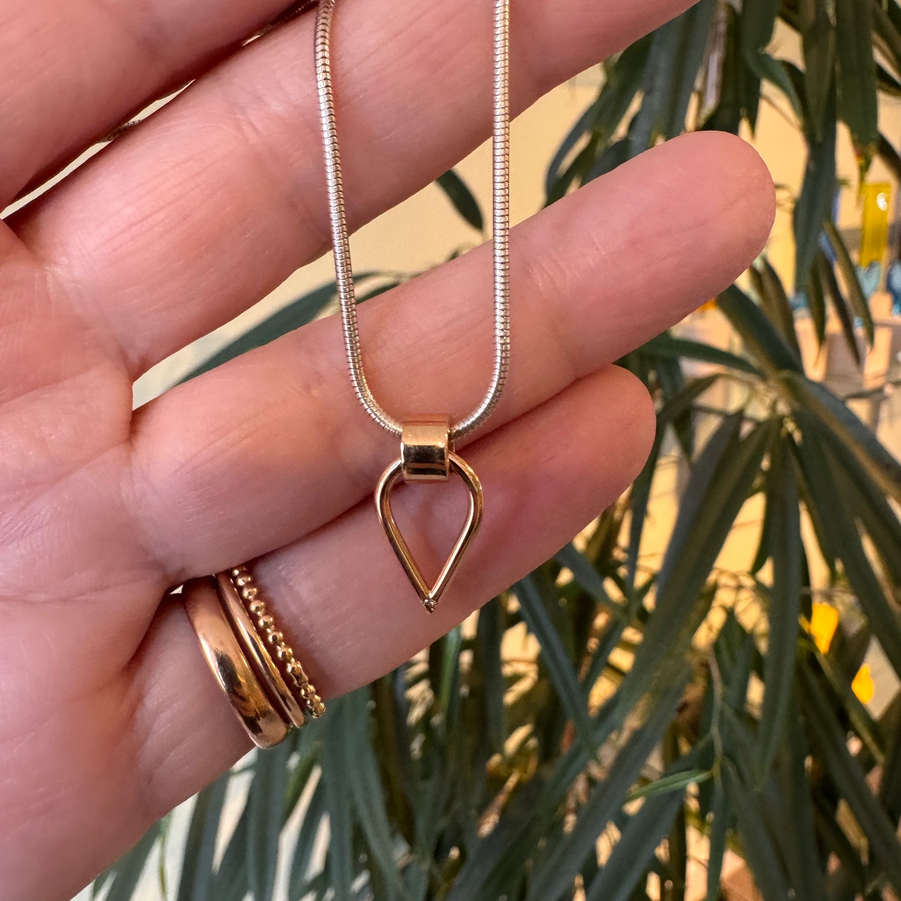 Droppformat hänge i 18k guld med ormlänk i silver, 38 cm